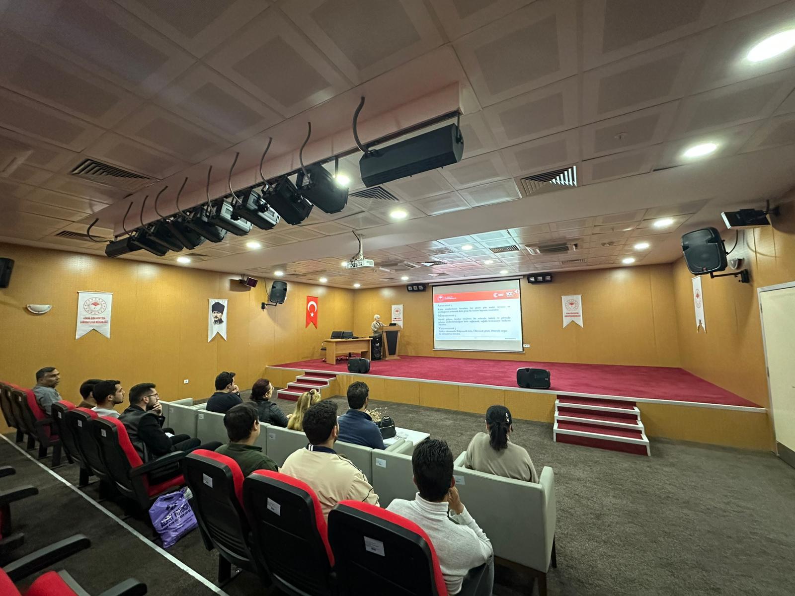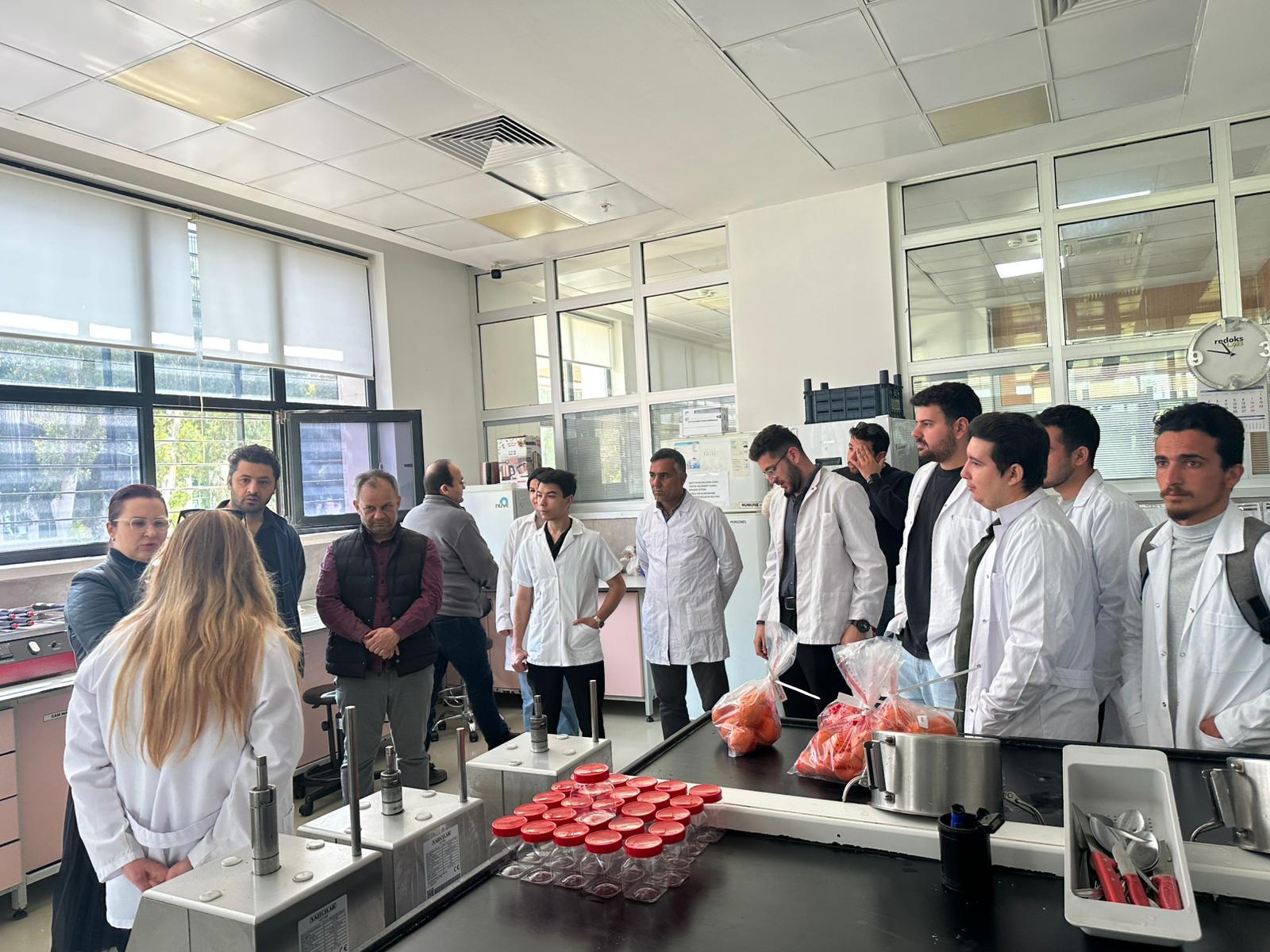 SUF402 Su Ürünleri Kalite Kontrolü dersi kapsamında öğrencilerimizin, mesleki bilgi ve deneyimlerini geliştirmek amacıyla T.C. Adana Gıda Kontrol Laboratuvarı’na teknik bir ziyaret gerçekleştirdik. Gerçekleştirilen bu ziyaret kapsamında öğrencilerimiz, gıda güvenliği ve kalite kontrol süreçlerinin uygulamalı olarak yürütüldüğü laboratuvarları yerinde inceleme fırsatı buldu. Müdür yardımcıları ve laboratuvar uzmanları tarafından yapılan bilgilendirici sunumda, kurumun faaliyet alanları, yürütülen analizler ve kullanılan ileri teknoloji cihazlar hakkında detaylı bilgiler paylaşıldı. Öğrencilerimize; fiziksel, kimyasal ve mikrobiyolojik analizlerin gıda güvenliği açısından önemi vurgulanarak, analiz süreçleri anlatıldı.